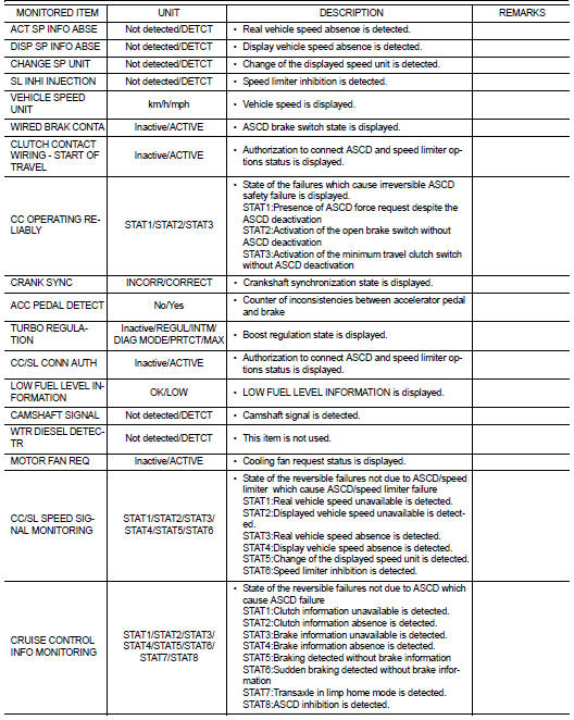 Any monitored item that does not match the vehicle being diagnosed is deleted