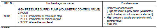 1.CHECK HIGH PRESSURE SUPPLY PUMP (VOLUMETRIC CONTROL VALVE) POWER SUPPLY CIRCUIT