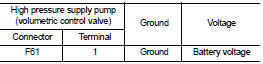 4. Check the voltage between high pressure supply pump (volumetric control valve) harness connector and ground.