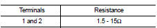3. Check resistance between high pressure supply pump (volumetric control valve) terminals as follows.