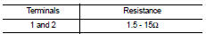 3. Check resistance between high pressure supply pump (volumetric control valve) terminals as follows.