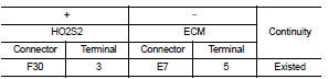 3. Check the continuity between HO2S2 harness connector and ECM harness connector.