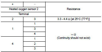 Check the heated oxygen sensor 2 heater. Refer to EC-581, "Component Inspection".