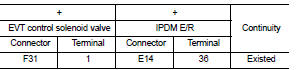3. Check the continuity between EVT control solenoid valve harness connector and IPDM E/R harness connector.
