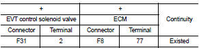 3. Check the continuity between EVT control solenoid valve harness connector and ECM harness connector.