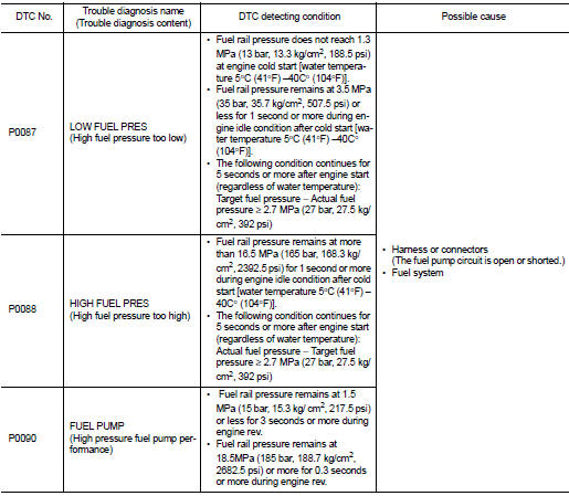 • If DTC P0087 or P0090 is displayed with DTC P1197, first perform the trouble