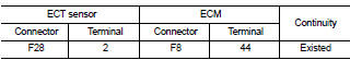 3. Check the continuity between ECT sensor harness connector and ECM harness connector.