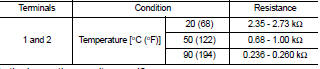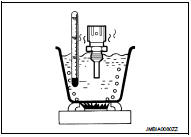 4. Check resistance between engine coolant temperature sensor terminals by heating with hot water as shown in the figure.