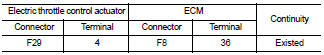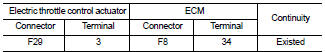 1. Check the continuity between electric throttle control actuator harness connector and ECM harness connector.