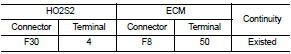 4. Check the continuity between HO2S2 harness connector and ECM harness connector.