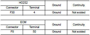 2. Check the continuity between HO2S2 harness connector or ECM harness connector and ground.