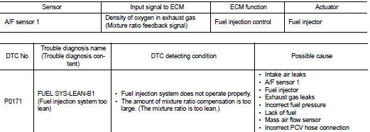Nissan Juke Service and Repair Manual : P0171 fuel injection system function