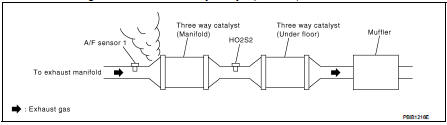 With the Air/Fuel Mixture Ratio Self-Learning Control, the actual mixture ratio can be brought closely to the theoretical mixture ratio based on the mixture ratio feedback signal from the A/F sensors 1. The ECM calculates the necessary compensation to correct the offset between the actual and the theoretical ratios.