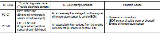 Nissan Juke Service and Repair Manual : P0197, P0198 EOT sensor