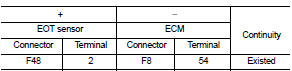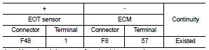 3. Check the continuity between EOT sensor harness connector and ECM harness connector.