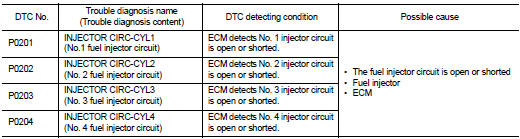 Nissan Juke Service and Repair Manual : P0201, P0202, P0203, P0204 fuel injector