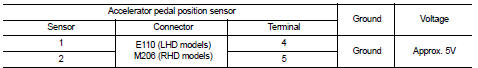 3. Check the voltage between accelerator pedal position sensor connector and ground