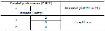 Check the resistance camshaft position sensor (PHASE) terminals as per the following.