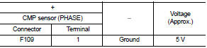 4. Check the voltage between CMP sensor (PHASE) harness connector and ground.