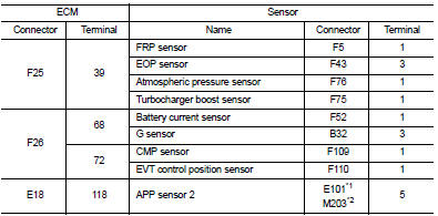 3. Check harness connector for short to power and short to ground, between the following terminals.