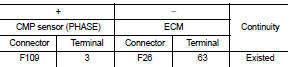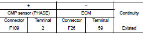 2. Check the continuity between CMP sensor (PHASE) harness connector and ECM harness connector.