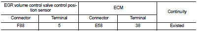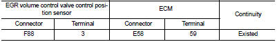 1. Check the continuity between EGR volume control valve control position sensor harness connector and ECM harness connector.