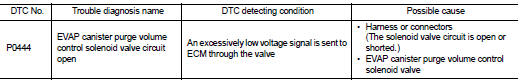 Nissan Juke Service and Repair Manual : P0444 EVAP canister purge volume control solenoid valve