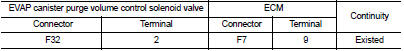 • Harness for open or short between EVAP canister purge volume control solenoid