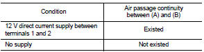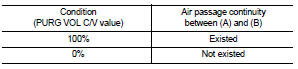 4. Check air passage continuity of EVAP canister purge volume control solenoid valve under the following conditions.