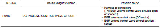 Nissan Juke Service and Repair Manual : P0487 EGR volume control valve