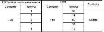 3. Check the continuity between EGR volume control valve terminal harness connector and ECM harness connector.