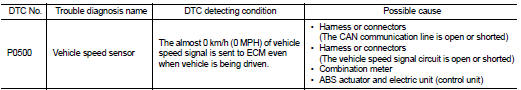 • If DTC P0500 is displayed with DTC U1001, first perform the trouble diagnosis