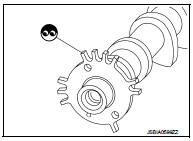 NO >> Remove debris and clean the signal plate of camshaft rear end or replace camshaft. Refer to EM-191, "Exploded View".