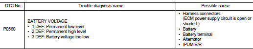 Nissan Juke Service and Repair Manual : P0560 battery voltage