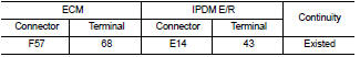 3. Check the continuity between ECM harness connector and IPDM E/R harness connector