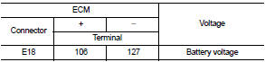 3. Check the voltage between ECM harness connector terminals.