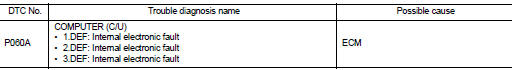 Is the DTC P060A displayed again? YES >> GO TO 2.