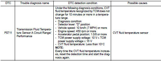 Nissan Juke Service and Repair Manual : P0711 transmission fluid temperature sensor A