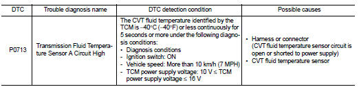 Nissan Juke Service and Repair Manual : P0713 transmission fluid temperature sensor A
