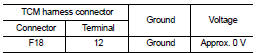 2. Check the voltage between the TCM harness connector terminal and ground.