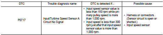 Nissan Juke Service and Repair Manual : P0717 input speed sensor A