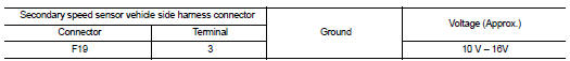 4. Check voltage between secondary speed sensor harness connector terminals.