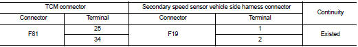 3. Check continuity between TCM connector terminal and secondary speed sensor harness connector terminal.