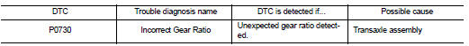 YES - 2 (DTC for “P0730” is displayed)>>Replace the transaxle assembly. Refer to TM-301, "Removal and Installation".