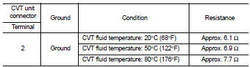 3. Check the line pressure solenoid valve. Refer to TM-423, "Component Inspection (Line Pressure Solenoid Valve)" Is the inspection result normal? YES >> GO TO 2.