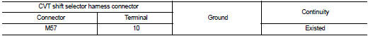 1. Check continuity between CVT shift selector harness connector terminals and ground.