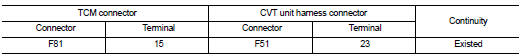 3. Check continuity between TCM connector terminal and CVT unit harness connector terminal.