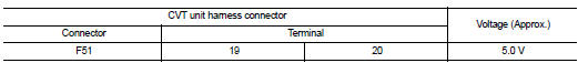 3. Check voltage between CVT unit harness connector terminals.