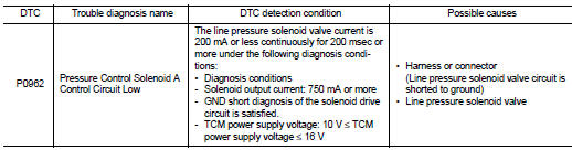 Nissan Juke Service and Repair Manual : P0962 pressure control solenoid A