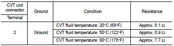 Check the resistance between the CVT unit connector terminal and ground.